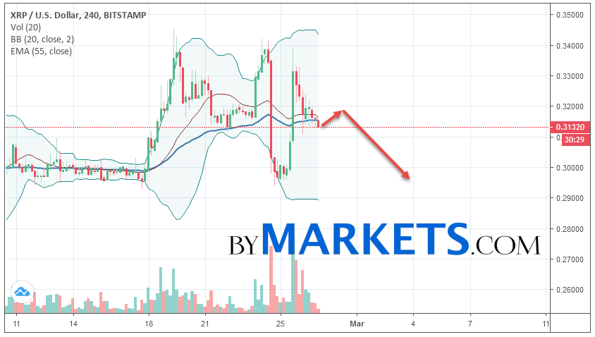 Ripple (XRP/USD) forecast and analysis on February 28, 2019 implies a test level of 0.3180. Further, it is expected to continue falling to the area below the level of 0.2960. The conservative area for selling Ripple is located area of 0.3430. Canceling the option of falling cryptocurrency will be a breakdown of the level of 0.3440. In this case, we should expect continued growth.