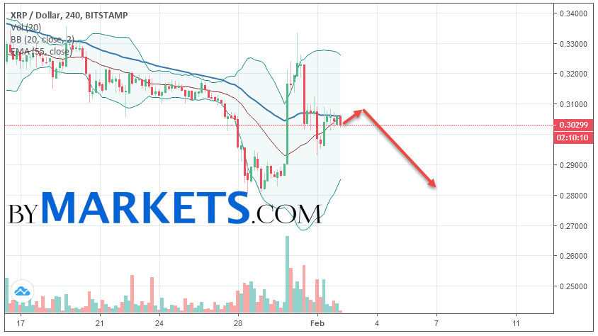 Ripple (XRP/USD) forecast and analysis on February 3, 2019 implies a test level of 0.3080. Further, the continuation of falling to the area below the level of 0.2820 is expected. The conservative area for selling Ripple is located area of 0.3280. Cancellation of the option of falling cryptocurrency will be the breakdown level of 0.3300. In this case, we can expect continued growth.