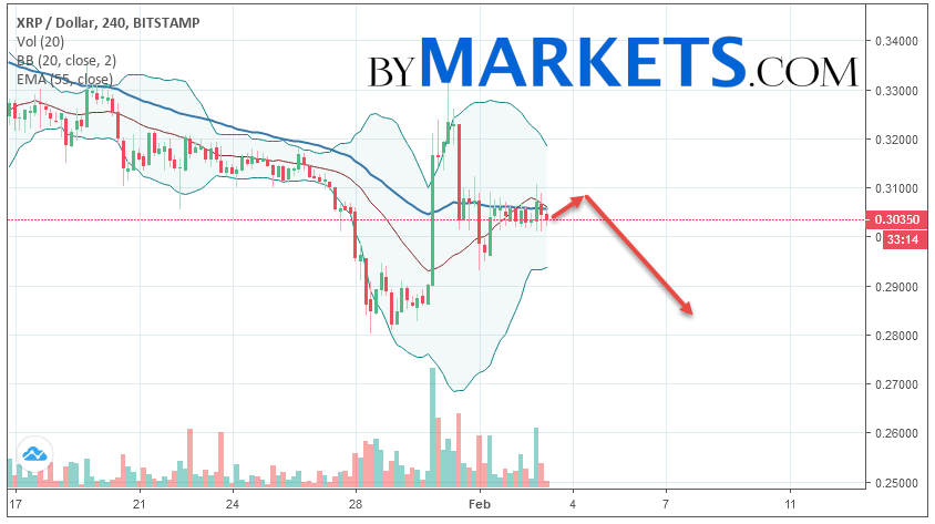Ripple (XRP/USD) forecast and analysis on February 4, 2019 implies a test level of 0.3080. Further, it is expected to continue falling to the area below the level of 0.2840. The conservative area for selling Ripple is located area of 0.3180. Canceling the option of falling cryptocurrency will be a breakdown of the level of 0.3240. In this case, we should expect continued growth.