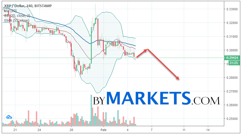 Ripple (XRP/USD) forecast and analysis on February 6, 2019 implies a test level of 0.3010. Further, it is expected to continue falling to the area below the level of 0.2790. The conservative area for selling Ripple is located area of 0.3080. Canceling the option of falling cryptocurrency will be a breakdown of the level of 0.3120. In this case, we should expect continued growth.