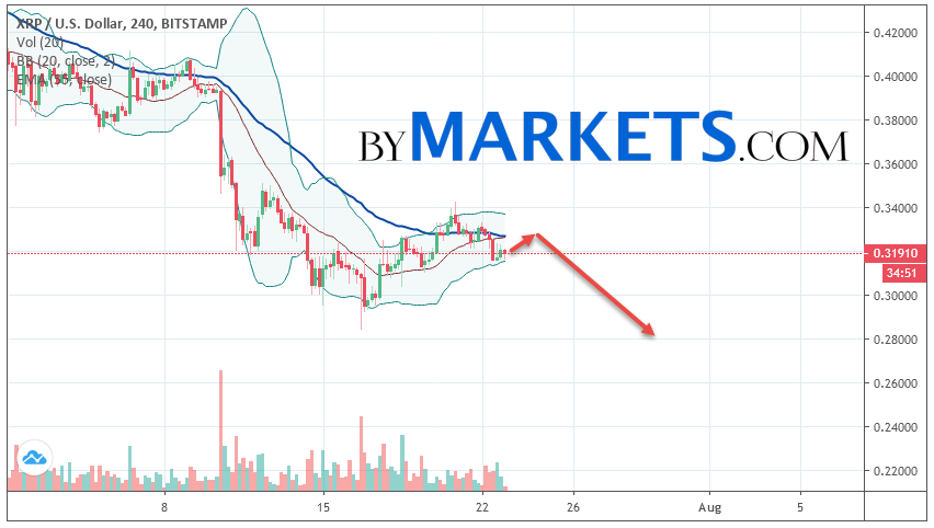 Ripple (XRP/USD) forecast and analysis on July 24, 2019 implies a test level of 0.3270. Further, it is expected to continue falling to the area below the level of 0.2820. The conservative area for selling Ripple is located area of 0.3370. Canceling the option of falling cryptocurrency will be a breakdown of the level of 0.3450. In this case, we should expect continued growth.