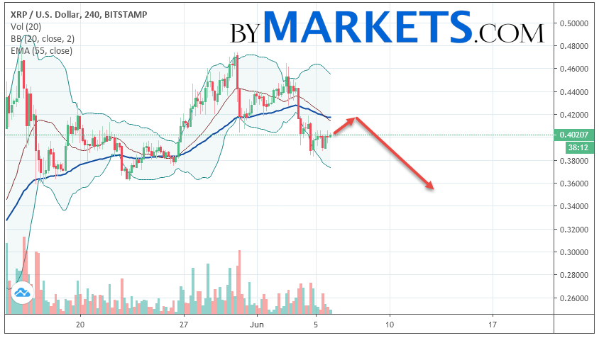 Ripple (XRP/USD) forecast and analysis on June 7, 2019 implies a test level of 0.4140. Further, it is expected to continue falling to the area below the level of 0.3540. The conservative area for selling Ripple is located area of 0.4550. Canceling the option of falling cryptocurrency will be a breakdown of the level of 0.4610. In this case, we should expect continued growth.