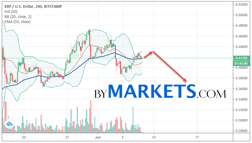 Ripple (XRP/USD) forecast and analysis on June 9, 2019 implies a test level of 0.4280. Further, it is expected to continue falling to the area below the level of 0.3720. The conservative area for selling Ripple is located area of 0.4300. Canceling the option of falling cryptocurrency will be a breakdown of the level of 0.4420. In this case, we should expect continued growth.