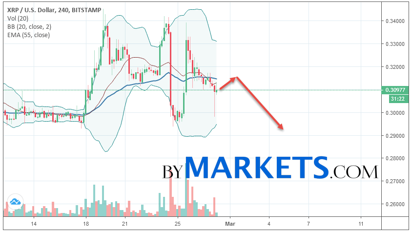 Ripple (XRP/USD) forecast and analysis on March 1, 2019 implies a test level of 0.3150. Further, it is expected to continue falling to the area below the level of 0.2920. The conservative area for selling Ripple is located area of 0.3310. Canceling the option of falling cryptocurrency will be a breakdown of the level of 0.3350. In this case, we should expect continued growth.