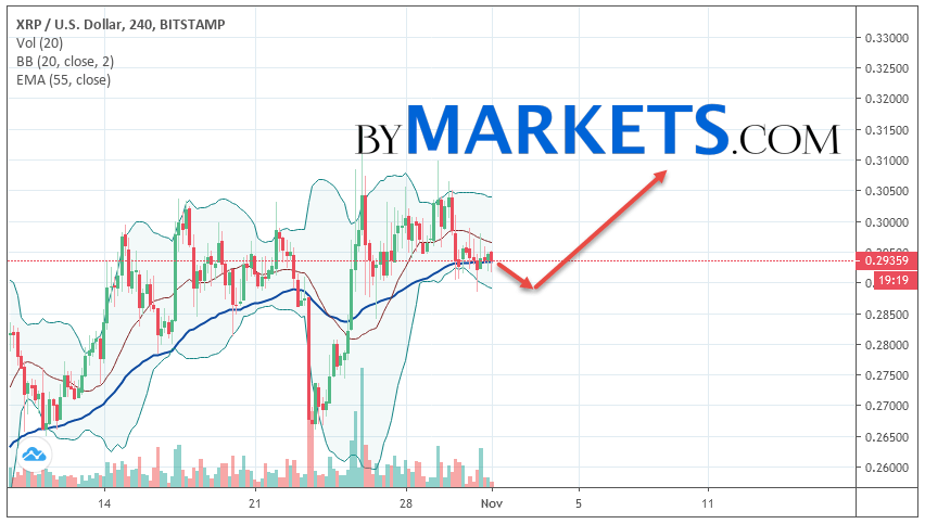 Ripple (XRP/USD) forecast and analysis on November 2, 2019 implies a test level of 0.2890. Further, growth is expected to continue to the area above the level of 0.3080. The conservative area for buying Ripple is located area of 0.2870. The cancellation of the option of cryptocurrency growth will be a breakdown of the level of 0.2810. In this case, we should expect the continuation of the fall.