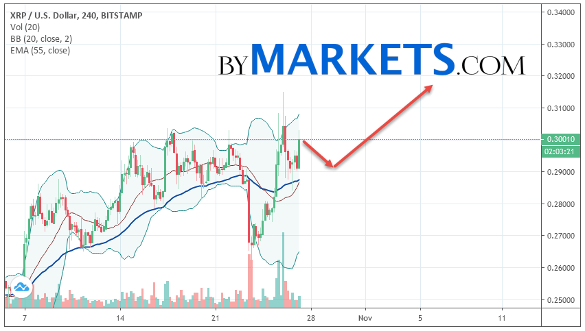 As part of the Ripple course forecast, a test level of 0.2920 is expected. Where should we expect an attempt to continue the growth of XRP/USD and the further development of the upward trend. The purpose of this movement is the area near the level of 0.3170. The conservative buying area for Ripple is located near the lower border of the Bollinger Bands indicator strip at 0.2650.