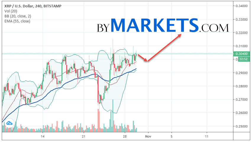 As part of the Ripple course forecast, a test level of 0.2990 is expected. Where should we expect an attempt to continue the growth of XRP/USD and the further development of the upward trend. The purpose of this movement is the area near the level of 0.3180. The conservative buying area for Ripple is located near the lower border of the Bollinger Bands indicator strip at 0.2920.