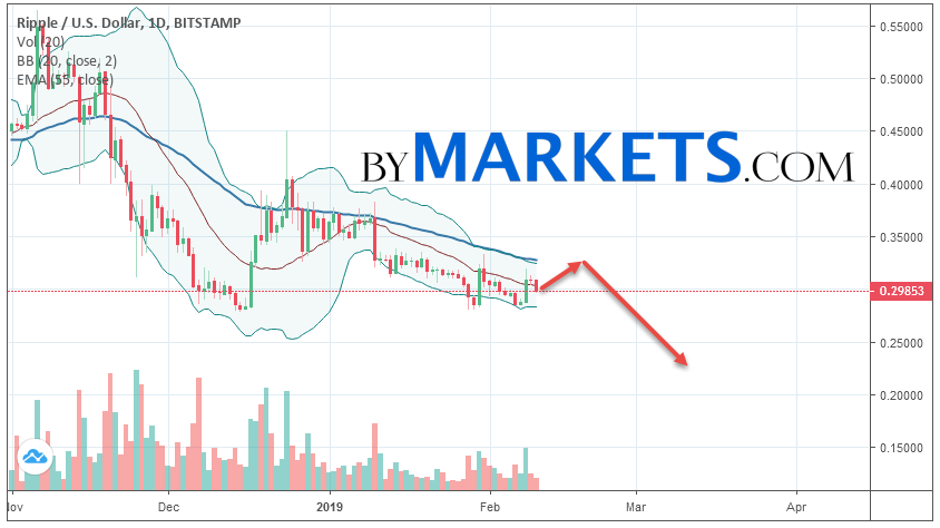 Ripple (XRP/USD) weekly forecast on February 11 — 17, 2019 implies a test level of 0.3280. Further, it is expected to continue falling to the area below the level of 0.2310. The conservative area for selling Ripple is located area of 0.3290. The cancellation of the option of falling cryptocurrency will be the breakdown level of 0.3580. In this case, we can expect continued growth.