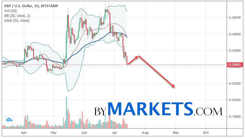 Ripple (XRP/USD) weekly forecast on July 15 — 21, 2019 implies a test level of 0.3330. Further, it is expected to continue falling to the area below the level of 0.2320. The conservative area for selling Ripple is located area of 0.3900. Canceling the option of falling cryptocurrency will be a breakdown of the level of 0.4680. In this case, we should expect continued growth.