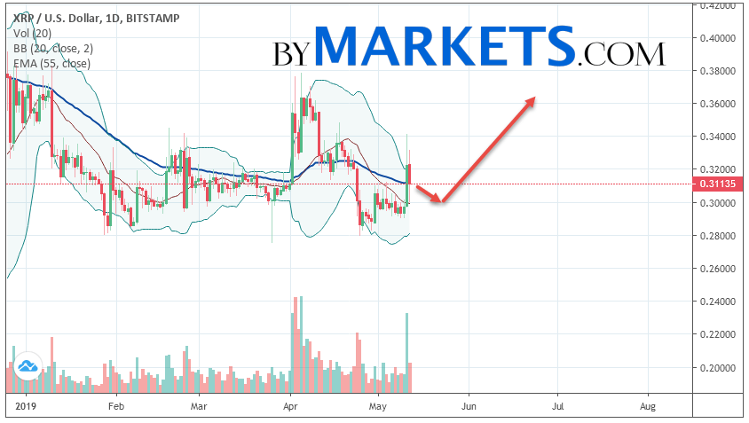 Ripple (XRP/USD) weekly forecast on May 13 — 19, 2019 implies a test level of 0.3000. Further, growth is expected to continue to the area above the level of 0.3620. The conservative area for buying Ripple is located area of 0.2820. The cancellation of the option of cryptocurrency growth will be a breakdown of the level of 0.2800. In this case, we should expect the continuation of the fall.